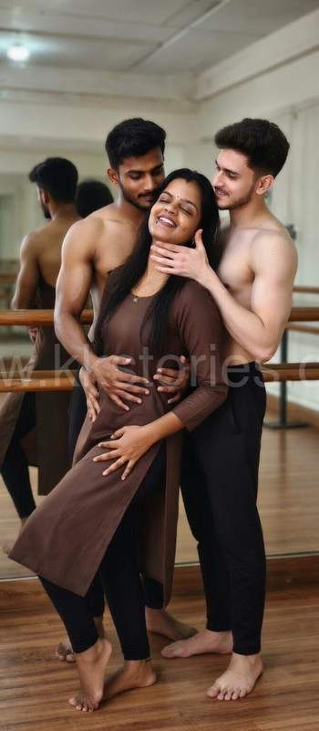 അച്ചു ഒരു കറുത്ത സ്പോർട്സ് ടൈറ്ററും ബ്രൗൺ ചുരിദാറുമാണ് ധരിച്ചിരുന്നതെങ്കിലും, ആ വസ്ത്രം അവളുടെ ശരീരവടിവുകളെ ഒട്ടും മറച്ചുപിടിച്ചിരുന്നില്ല. സിദ്ധാർത്ഥ് അവളുടെ പിന്നിൽ നിന്ന് അരക്കെട്ടിൽ കൈകൾ ചുറ്റിപ്പിടിച്ച് താളാത്മകമായി ചലിക്കാൻ തുടങ്ങി. സൽമാൻ അവളുടെ മുന്നിൽ നിന്ന് അവളുടെ തോളുകളിൽ കൈകൾ വെച്ച് മുഖത്തോട് മുഖം അടുപ്പിച്ചു.