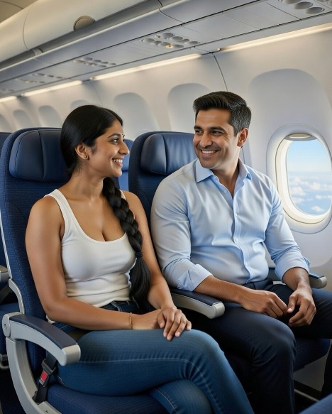 ”വിമാനത്തിൽ നല്ല തണുപ്പല്ലേ കൊച്ചേ… അതുകൊണ്ട് ഒന്ന് ചേർന്ന് ഇരുന്നതാ,” അച്ചായൻ തന്റെ തൃശ്ശൂർ സ്റ്റൈലിൽ ഒരു കള്ളച്ചിരിയോടെ മറുപടി നൽകി.