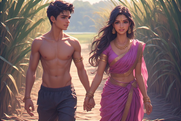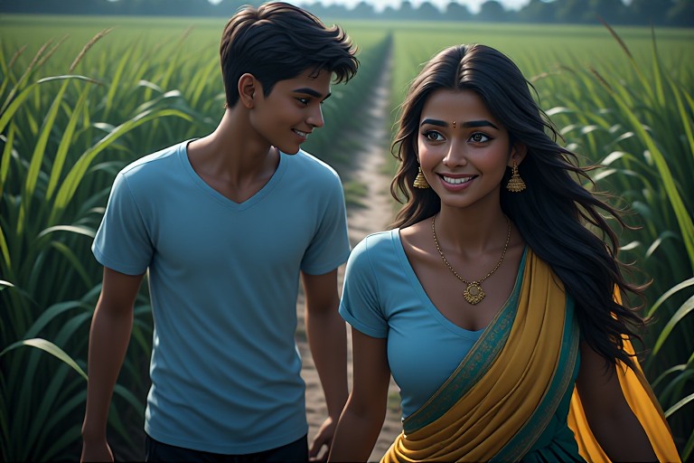 നോക്കെത്താ ദൂരത്തോളം പടർന്നു കിടക്കുന്ന പാടത്തുകൂടെ അവർ കളിച്ചും ചിരിച്ചും നടന്നു.