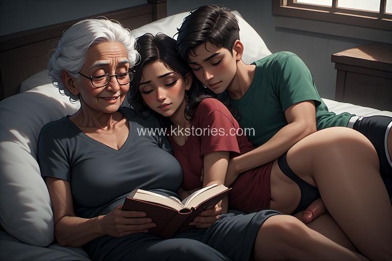 അമ്മൂമ്മയുടെ ശ്രദ്ധ ബുക്കിൽ ആണെന്ന വിശ്വാസത്തിൽ അവൻ ചേച്ചിയുടെ പൂറിൽ പാന്റിയുടെ മുകളിലൂടെ ഉരസി.