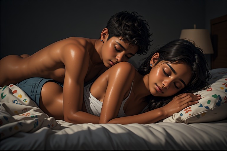 അപ്പോഴേക്കും ഉറക്കം പിടിച്ച അവളെ കിടത്തി കളിച്ചിട്ടാണ് അവൻ ഉറങ്ങിയത്.