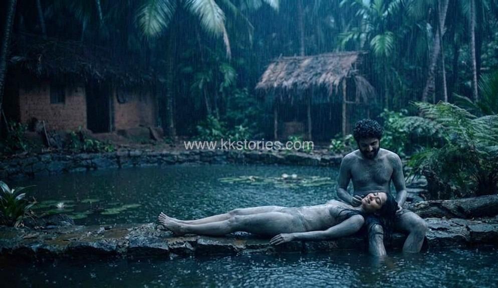 ആ കുളക്കടവിലെ മഴയുടെ പശ്ചാത്തലത്തിൽ മീരയുടെ ആവേശം അണപൊട്ടി ഒഴുകുകയായിരുന്നു. അർജുന്റെ പൗരുഷം വായയ്ക്കുള്ളിലാക്കി വന്യമായി ഊമ്പുന്നതിനിടയിൽ, അവൾ തന്റെ കൈകൾ താഴേക്ക് കൊണ്ടുപോയി അവന്റെ വൃഷണങ്ങളിലേക്ക് ആഴ്ത്തി. മുകൾഭാഗത്തെ കരുത്തിനെ തന്റെ ചുണ്ടുകൾ കൊണ്ട് നുകരുമ്പോൾ തന്നെ, താഴെ തൂങ്ങിക്കിടക്കുന്ന ആ രണ്ട് മണികളെയും അവൾ തന്റെ വിരലുകൾക്കിടയിലിട്ട് പതുക്കെ കശക്കാൻ തുടങ്ങി.