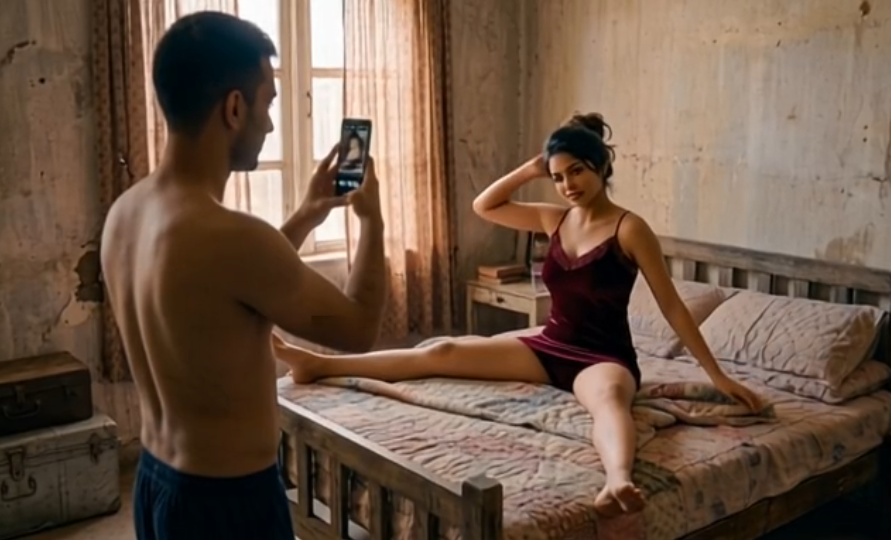 അപ്പോഴേക്കും മീര ആ നിറ്റഡ് ഷോർട്ട്സും കളർഫുൾ ടോപ്പും അണിഞ്ഞു പുറത്തേക്ക് വന്നു. അർജുൻ ആവേശത്തോടെ പറഞ്ഞു, “മീരാ, ബംബർ ലോട്ടറി! അമ്മയും അച്ഛനും വരാൻ വൈകും. നമുക്ക് ധൈര്യമായി പറമ്പിൽ പോയി ഫോട്ടോ എടുക്കാം!”