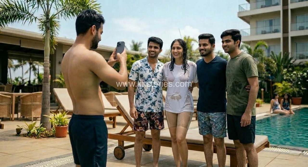 അവർ പരസ്പരം നോക്കി ആസ്വദിച്ചു പറയുന്ന വാക്കുകൾ അർജുന്റെ കാതുകളിൽ വ്യക്തമായി പതിഞ്ഞു: “എടാ… ആ ടി-ഷർട്ട് നോക്ക്! അതിന്റെ ഉള്ളിലൂടെ അവളുടെ ആ സുന്ദരി മുലകൾ എത്ര വ്യക്തമായാ കാണുന്നത്. നിപ്പിൾ ഒക്കെ തള്ളി നിൽക്കുന്നത് കണ്ടോ? അടിയിൽ ഒന്നും ഇട്ടിട്ടില്ലെന്ന് ഉറപ്പാ.”