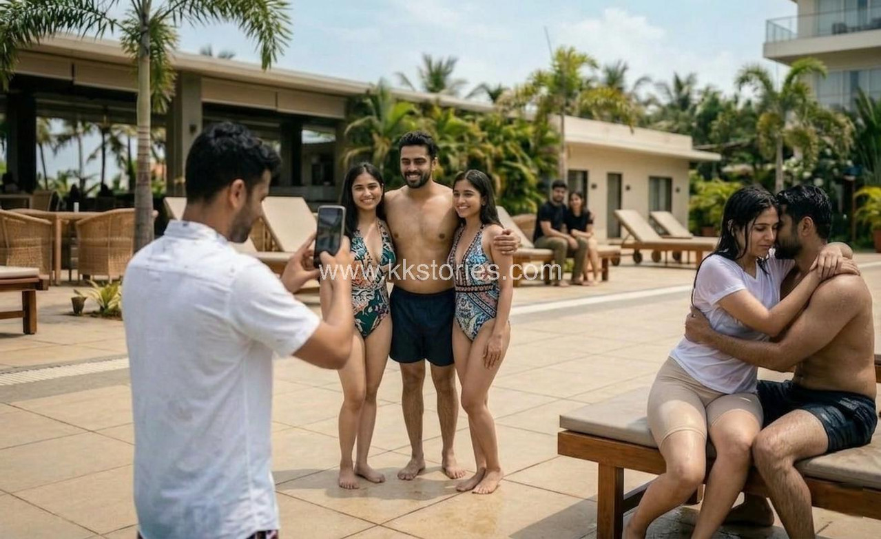 “മീരാ… നിന്റെ ഈ വേഷം… ശരിക്കും ഞങ്ങളെ ഭ്രാന്ത് പിടിപ്പിക്കുന്നുണ്ട്. ഈ ഫോട്ടോയിൽ നിന്റെ ആ ഷേപ്പ് നോക്ക്, മുലകൾ ശരിക്കും ഐസ് ക്യൂബ് പോലെ തെളിഞ്ഞു നിൽക്കുന്നു!” (ചിരിച്ചുകൊണ്ട് അവനോട് കൂടുതൽ ചേർന്നുനിന്ന്) “ആണോ? അപ്പോൾ ഫോട്ടോ എടുക്കുമ്പോൾ കൈ വിറയ്ക്കാതെ നോക്കിക്കോ. നീ എന്തിനാ ഇത്രയും അമർത്തി പിടിക്കുന്നത്?”. “പിടിക്കാതെ എന്ത് ചെയ്യും? നീ ഇങ്ങനെ ഒട്ടി നിൽക്കുമ്പോൾ എനിക്ക് കൺട്രോൾ പോകുന്നു. അർജുൻ ബ്രോ നോക്കുന്നുണ്ടോ എന്ന് പോലും ഞാൻ മറന്നു പോയി.”