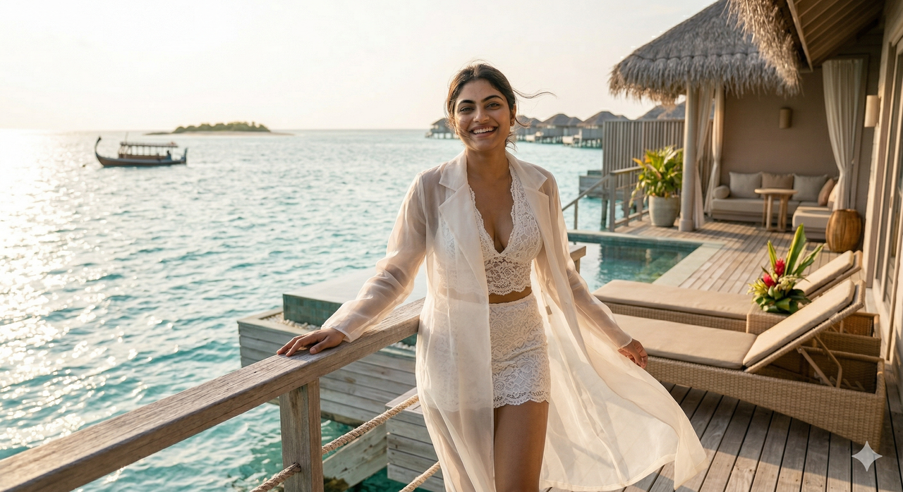 ഹണിമൂണിനായി അവർ തിരഞ്ഞെടുത്തത് മാലിദ്വീപിലെ ഒരു എക്സ്ക്ലൂസീവ് വാട്ടർ വില്ലയായിരുന്നു. അവിടെ നീലക്കടലിന് നടുവിൽ അവർ തനിച്ചായി.