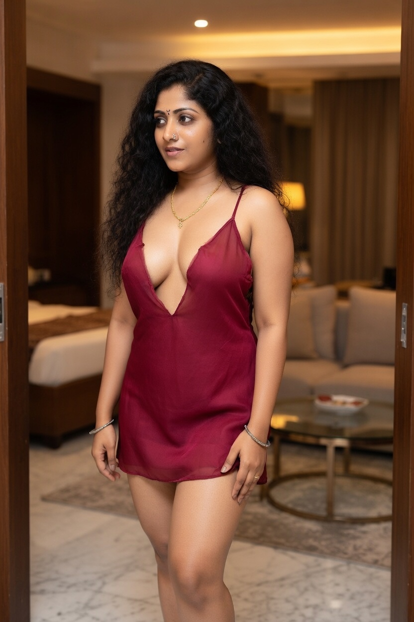 അപ്പോഴാണ് ബെഡ്റൂം വാതിൽ തുറന്ന് രേവതി പുറത്തേക്ക് വന്നത്. അവളെ കണ്ടതും സുരേഷും ഉണ്ണിയും ഒരുപോലെ ഞെട്ടിപ്പോയി. രേവതി ധരിച്ചിരുന്നത് അങ്ങാനത്തെ ഒരു ഡ്രസ്സായിരുന്നു. അവളുടെ ശരീരത്തിന്റെ ഓരോ വടിവും എടുത്തു കാണിക്കുന്ന, നേർത്ത സിൽക്ക് തുണികൊണ്ടുള്ള ഒരു മെറൂൺ സ്ലിപ്പ് ഡ്രസ്സ്. മുട്ടറ്റം പോലുമില്ലാത്ത ആ ഡ്രസ്സിലൂടെ അവളുടെ ഉറച്ച വെളുത്ത തുടകൾ വിരിഞ്ഞു നിന്നു. അതിന്റെ ഡീപ്പ് നെക്കിലൂടെ അവളുടെ മുലകളുടെ വിടവ് വല്ലാതെ തെളിഞ്ഞു കാണാമായിരുന്നു. ജിമ്മിലെ കഠിനാധ്വാനം അവളുടെ ശരീരത്തിന് നൽകിയ ആ വന്യമായ ആകൃതി ആ ഡ്രസ്സിൽ പൂർണ്ണമായും വെളിവാക്കപ്പെട്ടു. അവളുടെ കണ്ണുകളിൽ വല്ലാത്തൊരു തിളക്കമുണ്ടായിരുന്നു. ഉണ്ണിയെ കണ്ടപ്പോൾ അവൾ ഒന്ന് പുഞ്ചിരിച്ചു—ഒരു വന്യമായ പെൺപുലിയുടെ പുഞ്ചിരി. ഉണ്ണി തന്റെ ഗ്ലാസ്സിലെ പാനീയം ഒരൊറ്റ ഇറക്കിന് കുടിച്ചുതീർത്തു. അവന്റെ കണ്ണുകൾ രേവതിയുടെ മാറിലും തുടകളിലും തറഞ്ഞു നിന്നു. സുരേഷിന് തന്റെ ഫാന്റസി ഇപ്പോൾ കണ്മുന്നിൽ യാഥാർത്ഥ്യമാകുന്നത് പോലെ തോന്നി.