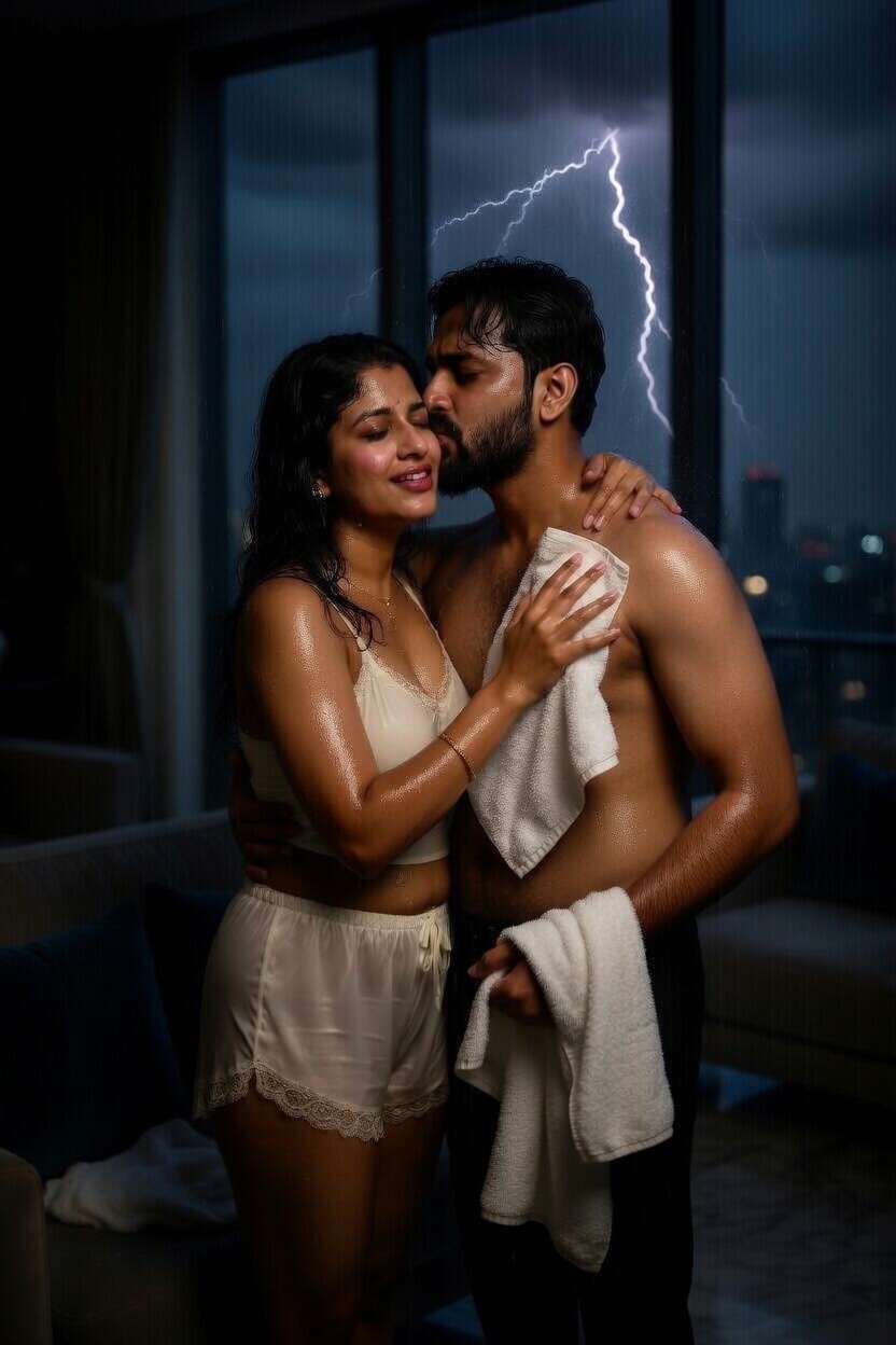 ഓരോ സെക്കൻഡിലും ജനാലയുടെ ചില്ലുകൾ കടന്ന് മിന്നൽപ്പിണരുകൾ മുറിക്കുള്ളിലേക്ക് അരിച്ചെത്തുമ്പോൾ, ആ കൂരിരുട്ടിൽ അവരുടെ നിഴലുകൾ ഭിത്തികളിൽ വന്യമായി ആടിക്കളിക്കാൻ തുടങ്ങി. അത് കാണുമ്പോൾ ശരിക്കും പുറത്തെ ആ വലിയ കൊടുങ്കാറ്റിനോട് മത്സരിക്കാൻ ഒരുങ്ങുന്ന രണ്ട് ജീവികളെപ്പോലെ തോന്നി.