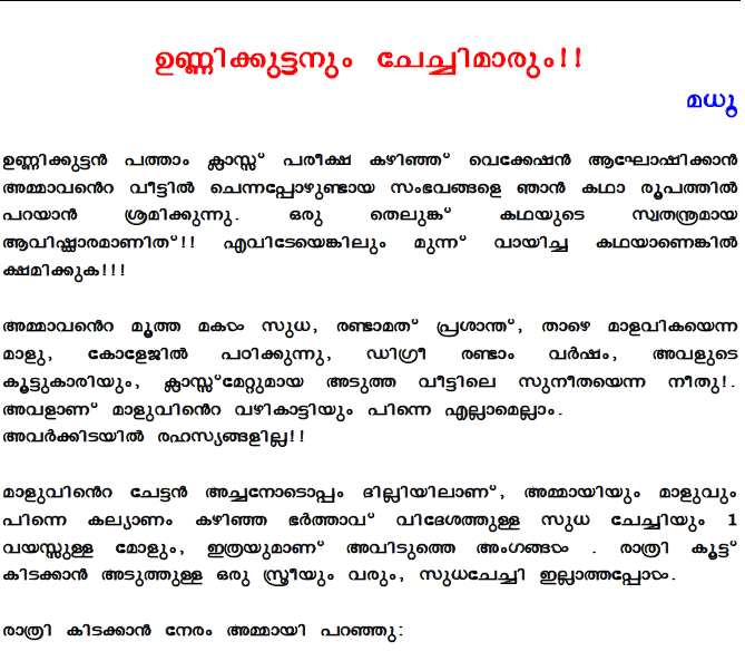 Unnikkuttanum chechimarum 164 kkstories May 14, 2011 രതിഅനുഭവങ്ങൾ Comments Unnikkuttanum chechimarum DOWNLOAD DownloaD DOWNLOAD 11